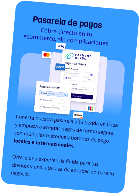 No importa si vendes en línea, en tienda física o a través de redes sociales: nuestros multiples métodos de pagos se adaptan a tu operación, tu marca y tu ritmo.